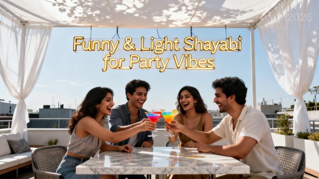 Shayari is not just for sorrow; it also celebrates fun, friendship, and party moments. In 2026, these humorous lines make for perfect social media captions or fun gatherings with friends.